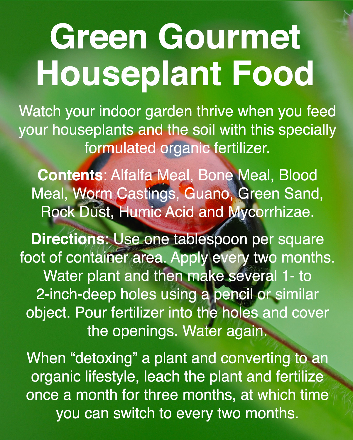 Watch your indoor garden thrive when you feed your houseplants and the soil with this specially formulated organic fertilizer.